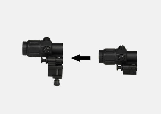التركيب الجانبي المحسن (STS) يسمح بالتبديل السريع بين التكبير ٣x والمشهد ١x.